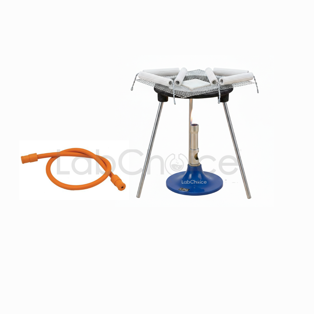 - Complete Bunsen burner heating support kit with rubber tube gas connection